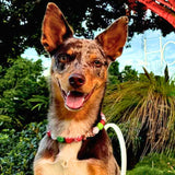 Make you pup the star of Christmas with a custom beaded dog necklace. Designed with festive acrylic bubblegum beads in shades of red, green & white. These necklaces are the perfect accessory for Christmas photos, festive family gatherings or just spreading doggy cuteness Christmas cheer.